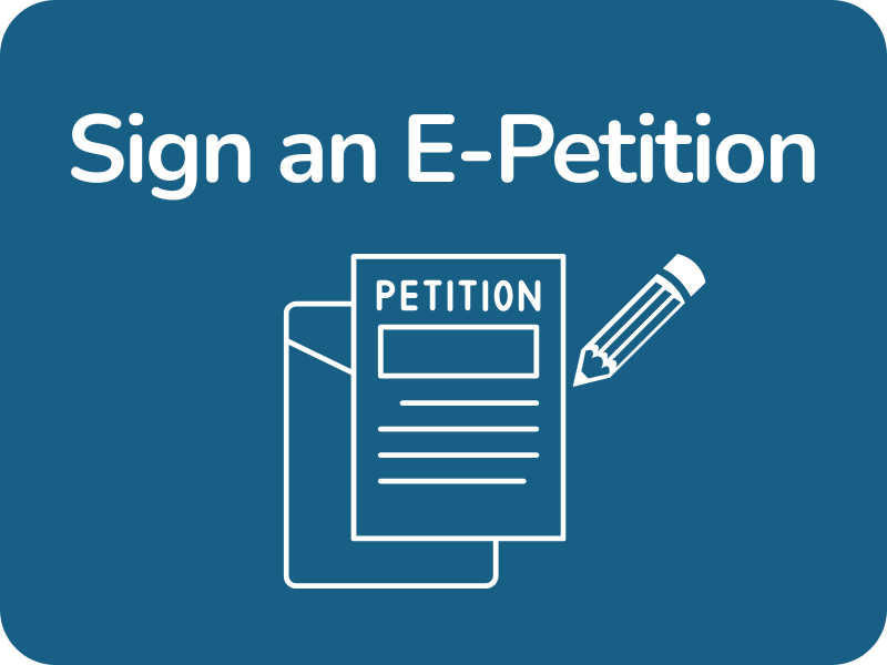 Start an E-PetitionCreate an e-petition on an issue that matters to you and start gathering signatures. | Find an existing e-petition and support it with your signature. |